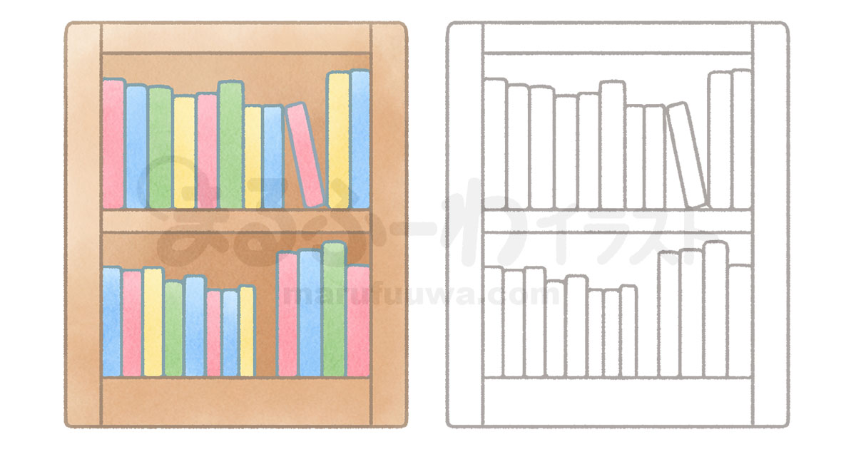 色塗りできる本棚のイラストぬれよん-ぬれるフリーイラスト。