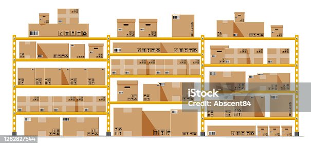 棚の荷物を整理する商品を置く - 産業イメージ 無料イラスト。