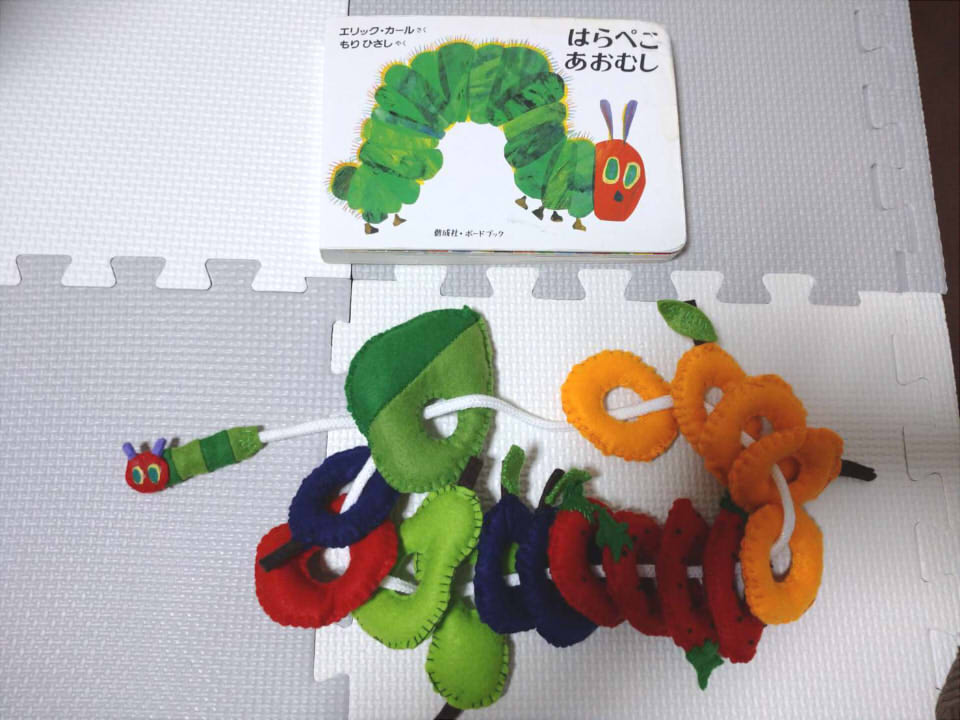 フェルトで手作りおもちゃ♪ はらぺこあおむしの紐通し - ゆっくり歩いていこう。