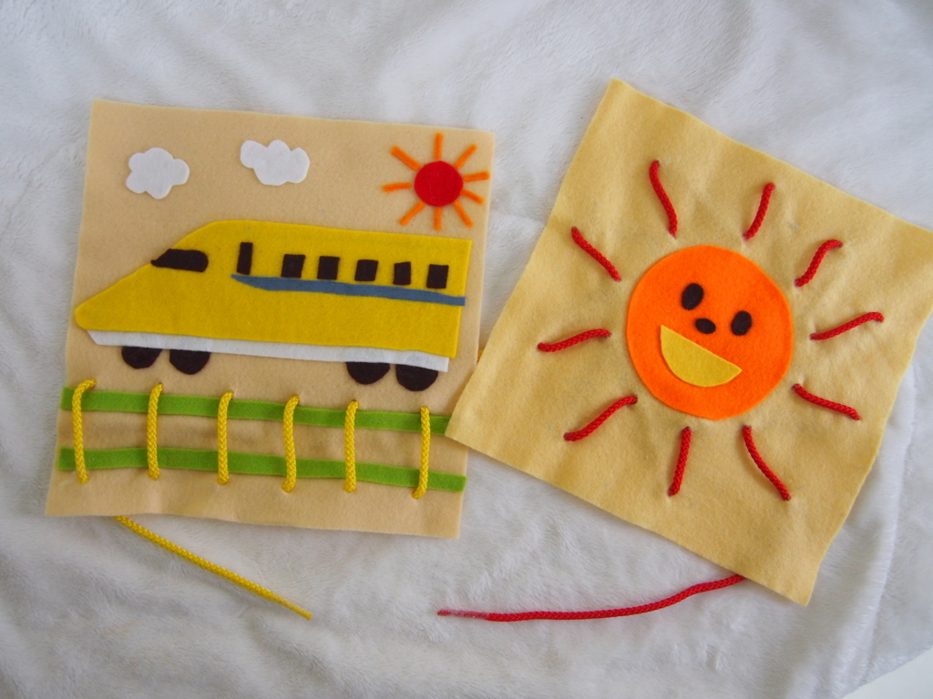 ひも通し フェルト おもちゃ 紐通しの練習ができる知育おもちゃをフェルトで手作り。