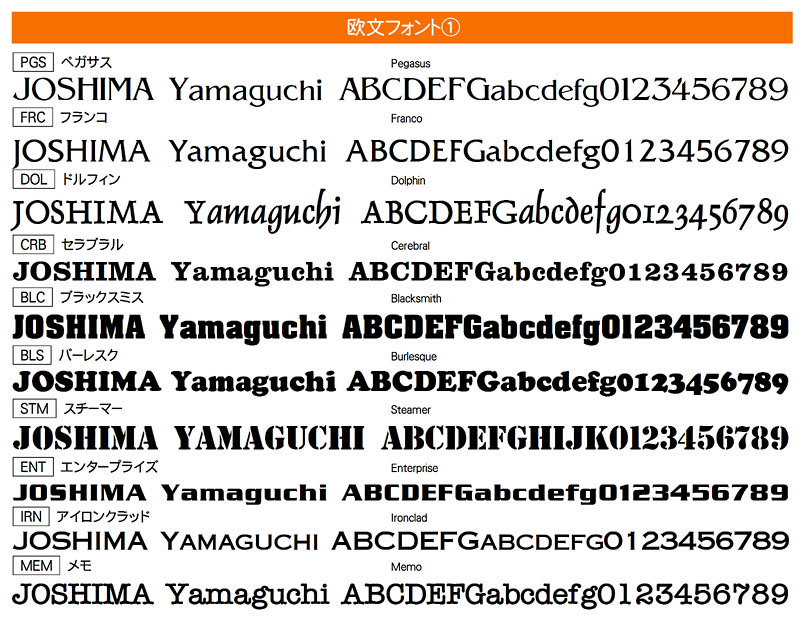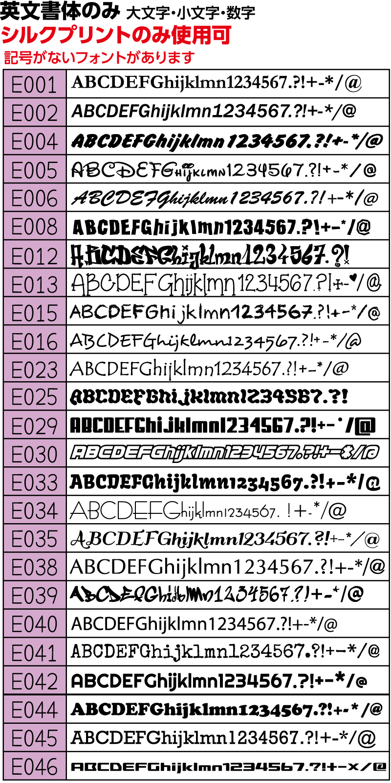 フォント一覧オリジナルTシャツのプリント・作成ならコピーワークス。