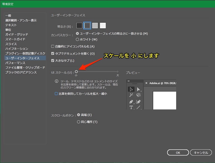 Illustrator のUIやフォントサイズが大きく表示される - Illustratorの操作方法・使い方iPentec。