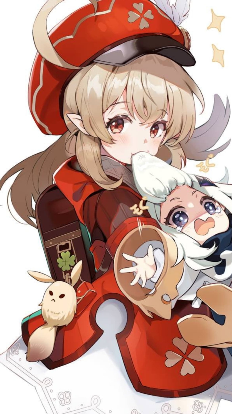 原神 可愛いクレーとパイモンの890 x 1590スマホ壁紙壁紙キングダム。