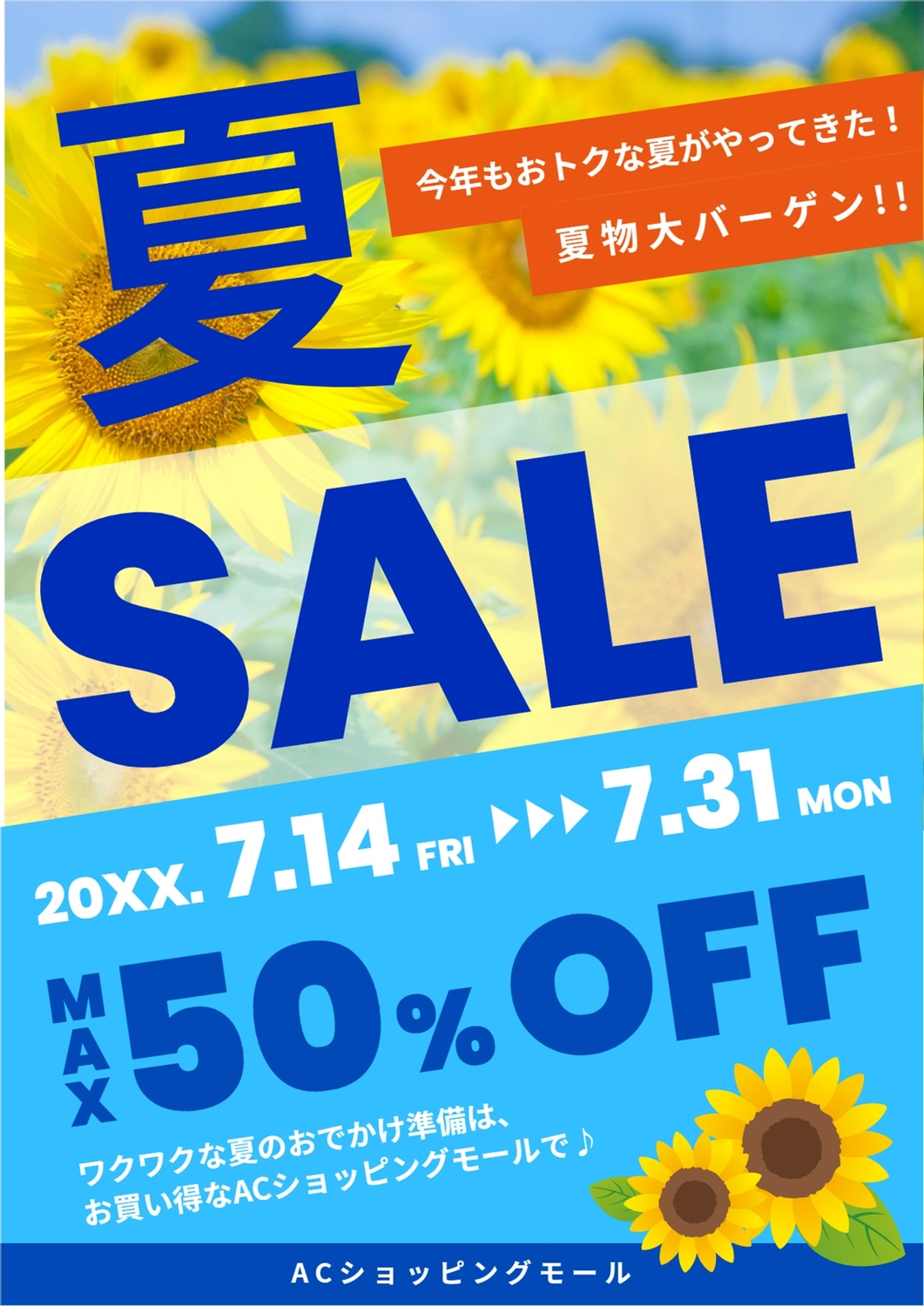 夏のSALE 販促チラシポスターDM:イラスト無料。