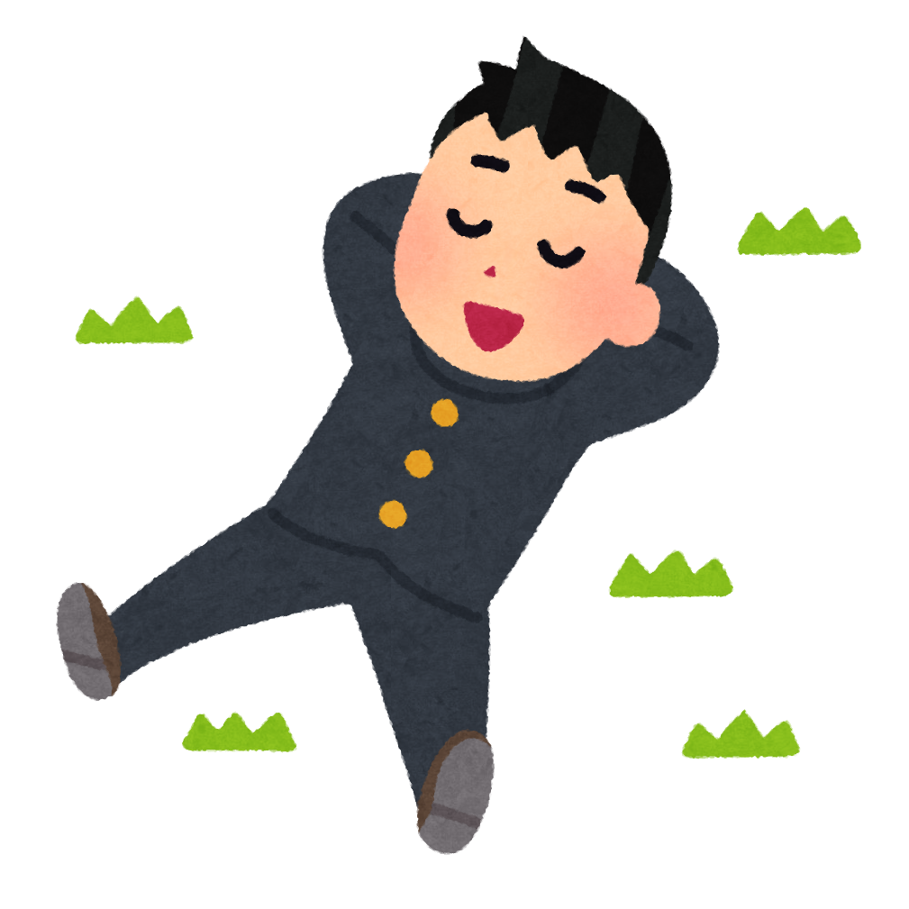 外で昼寝をする人のイラスト 男子学生かわいいフリー素材集 いらすとや。