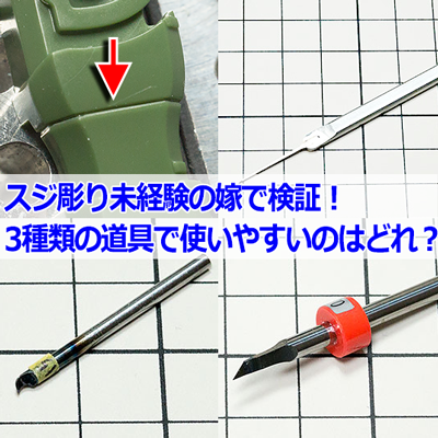 嫁が初のスジ彫りで称賛した道具!三種類を比較して選出!おっさんGプラモ生活。