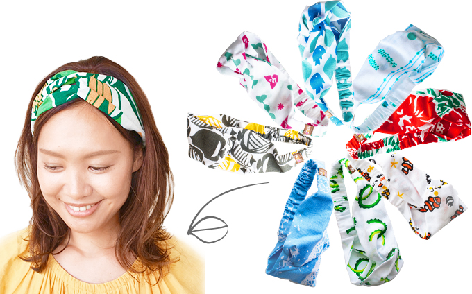 宮古島デザインマッチてぬぐいから作ったシュシュ。グリーン系🟢Instagram。