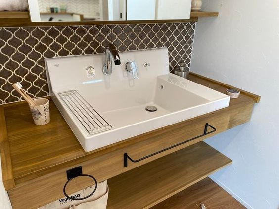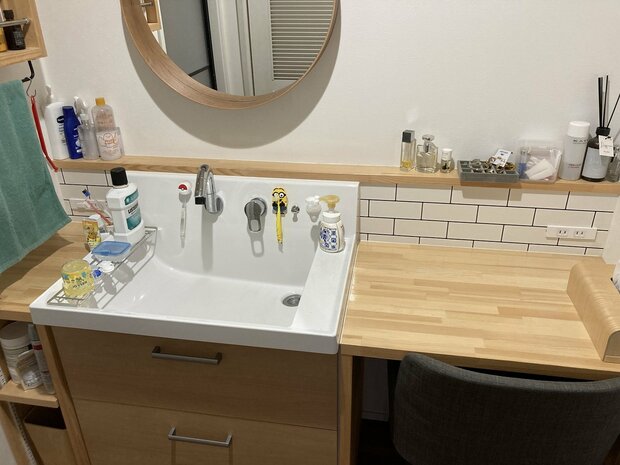 洗面所◇ピアラの洗面台を造作風にアレンジする工夫田舎で平家のおうち暮らし。