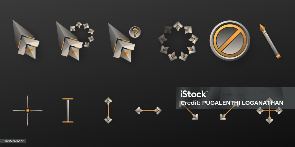 ファンタジーシルバーとゴールドのテーマのカスタムマウスカーソルポインタアイコンセットをゲームuiデザインに -3Dのベクターアート素材や画像を多数ご用意 - iStock。