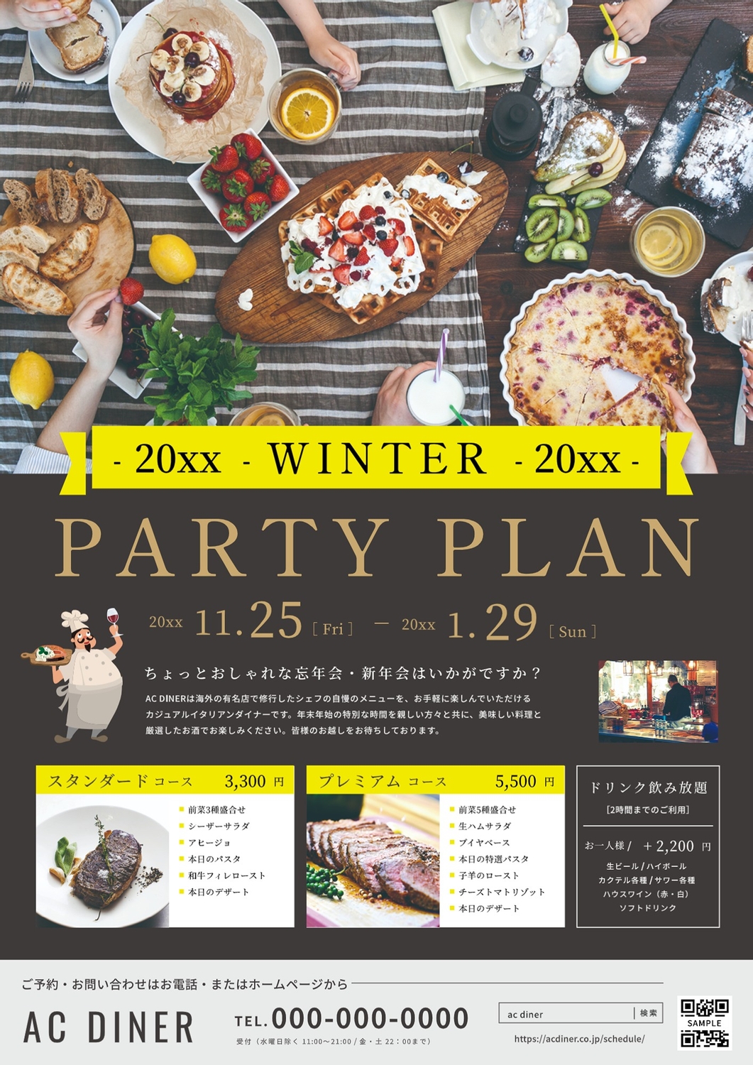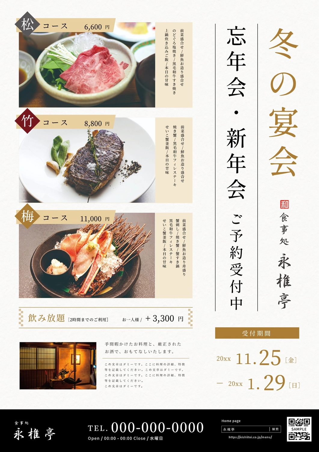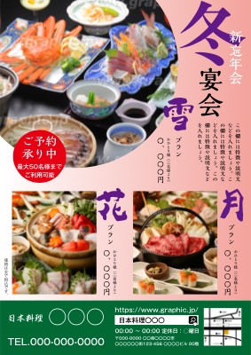 居酒屋_忘年会・新年会チラシ・フライヤーコース料理の無料デザインテンプレート印刷のラクスル。