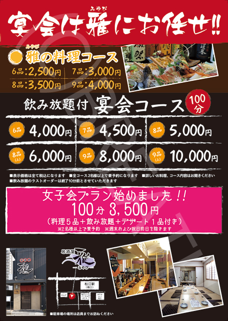 20160707居酒屋 雅 広告チラシ 裏面ホームページ・デザイン制作専門会社ブレス。