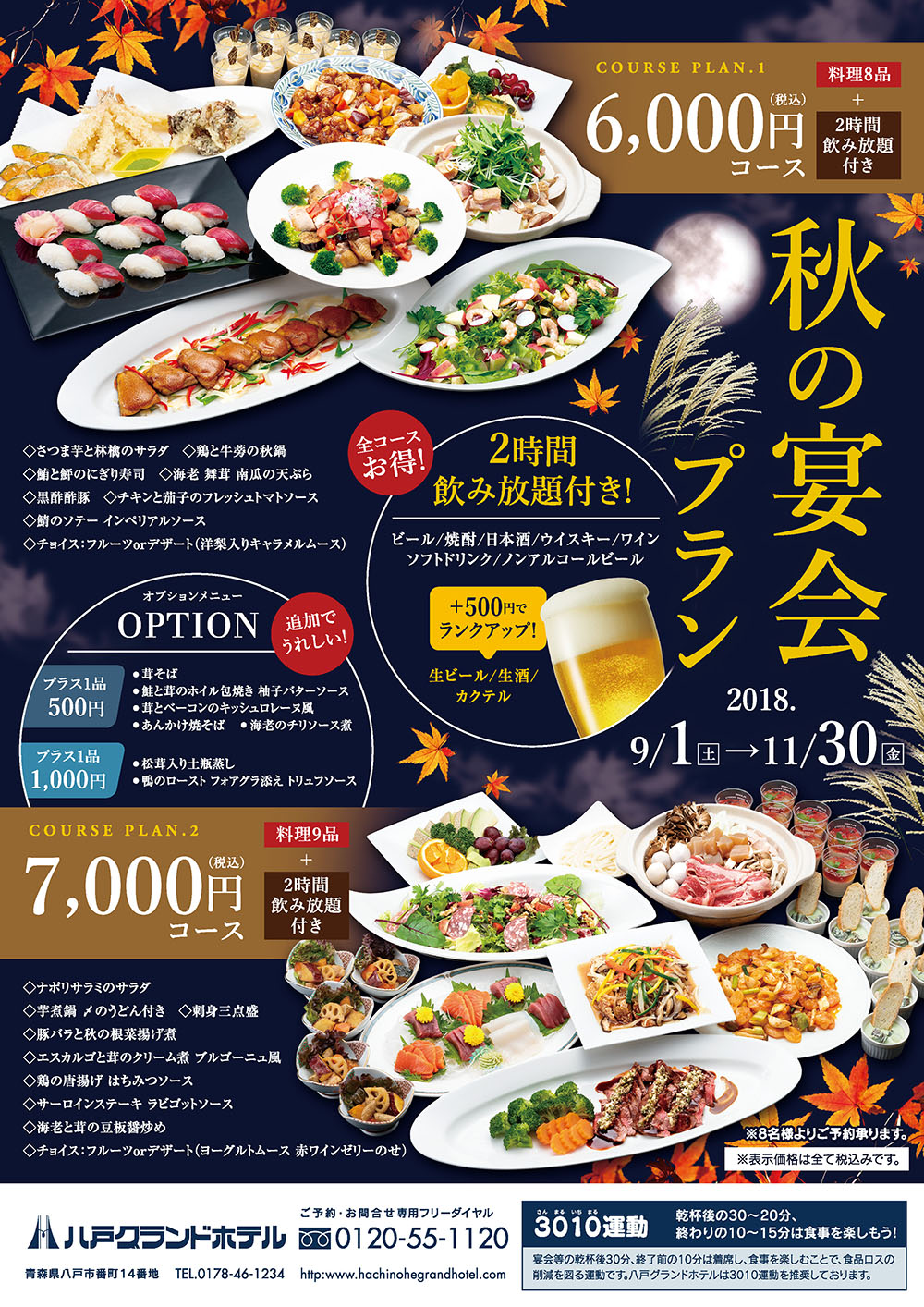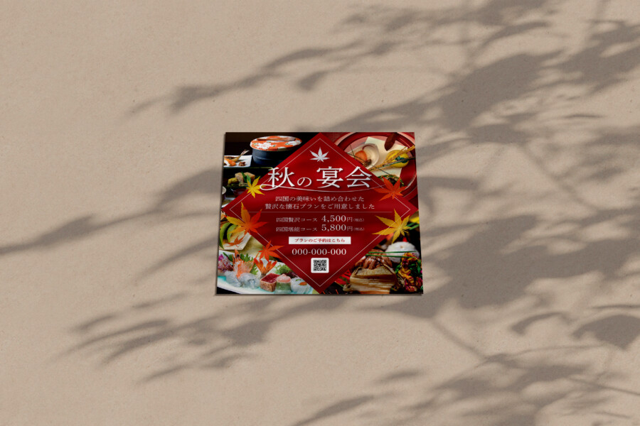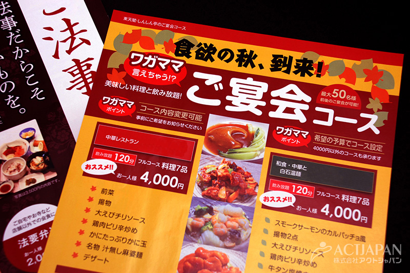秋宴会ちらし看板デザインで店舗の集客力UP!八甲コーポレーション 大阪。