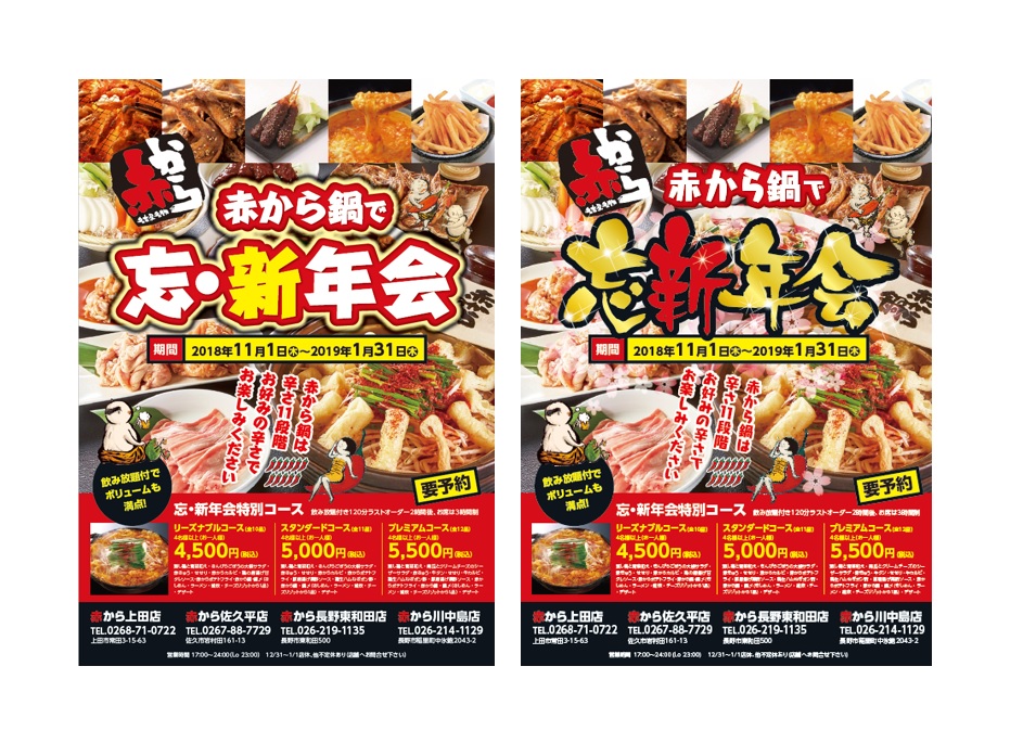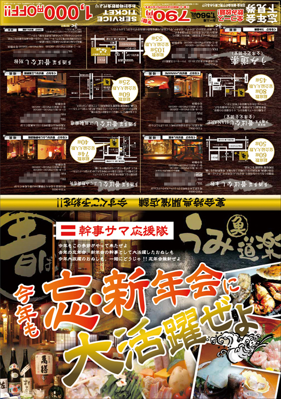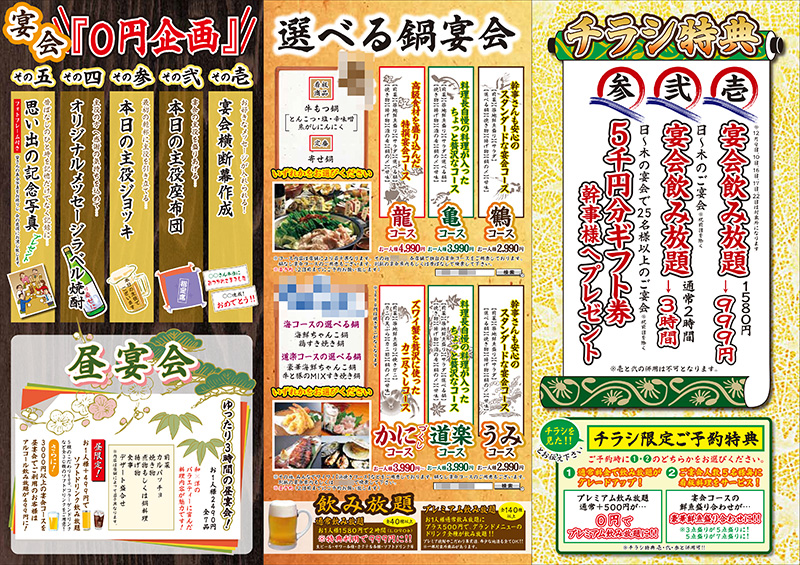忘新年会版折込チラシ飲食店のチラシデザイン作成・印刷なら飲食チラシ制作.com。