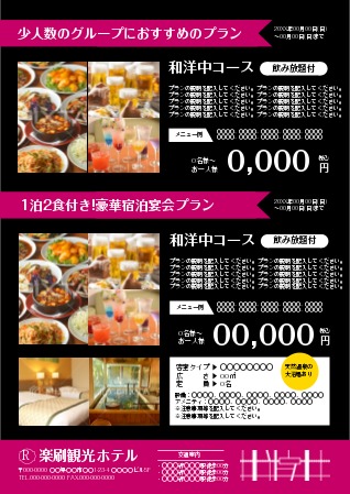 ホテル_和食_宴会コースチラシ・フライヤー旅行・宿泊の無料デザインテンプレート印刷のラクスル。