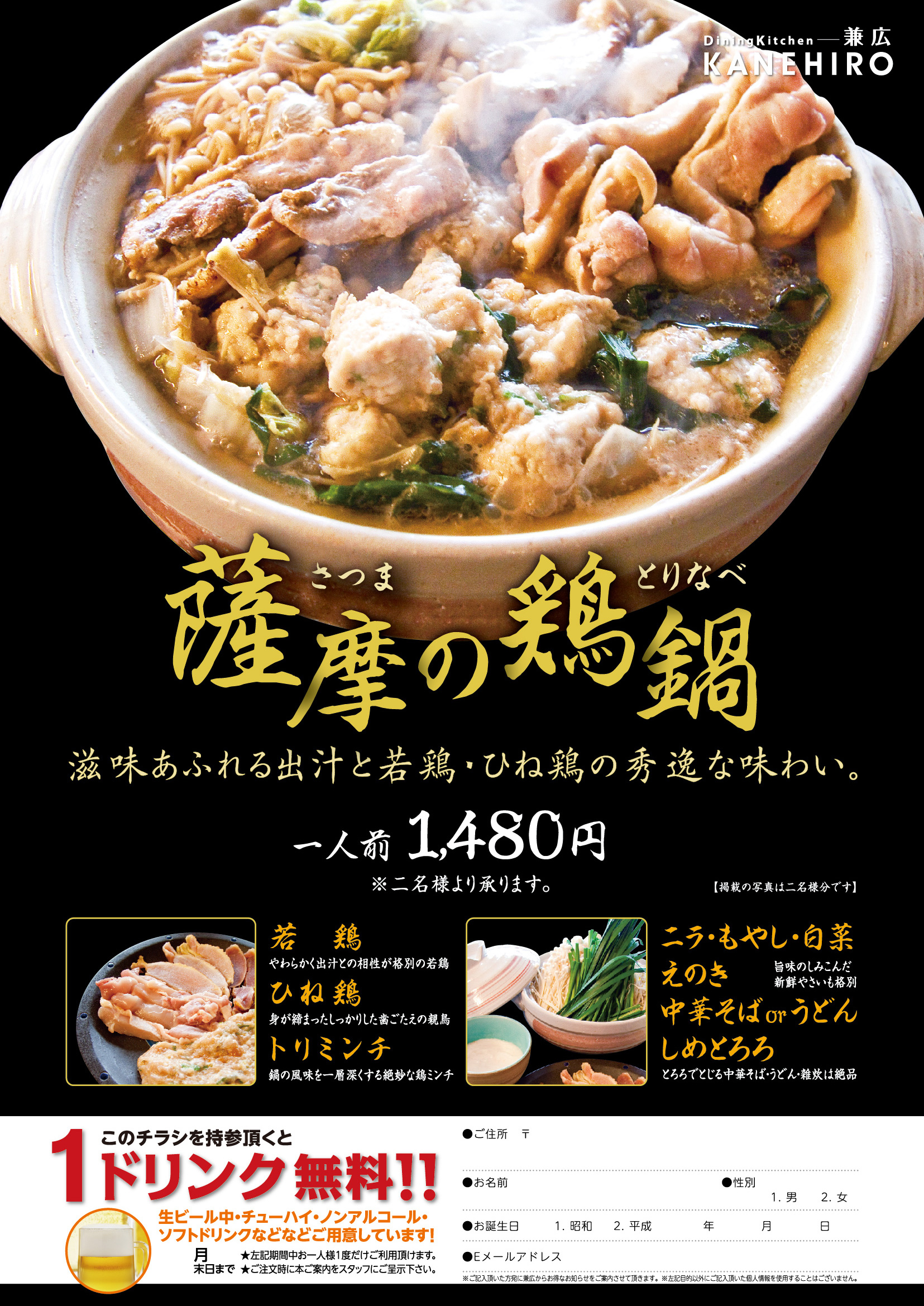 お食事処 兼広 宴会案内チラシ サービス券付 – ファインワーク FINE WORK。