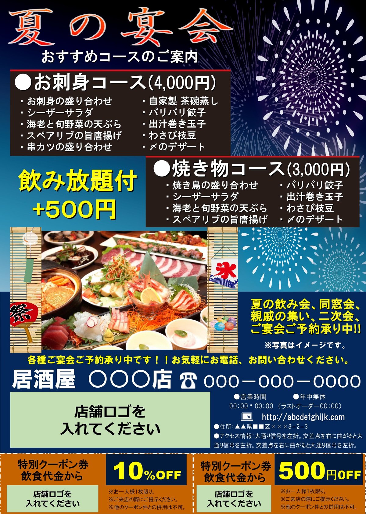 夏花火の宴会チラシ クーポン付き POPテンプレートWing Store。