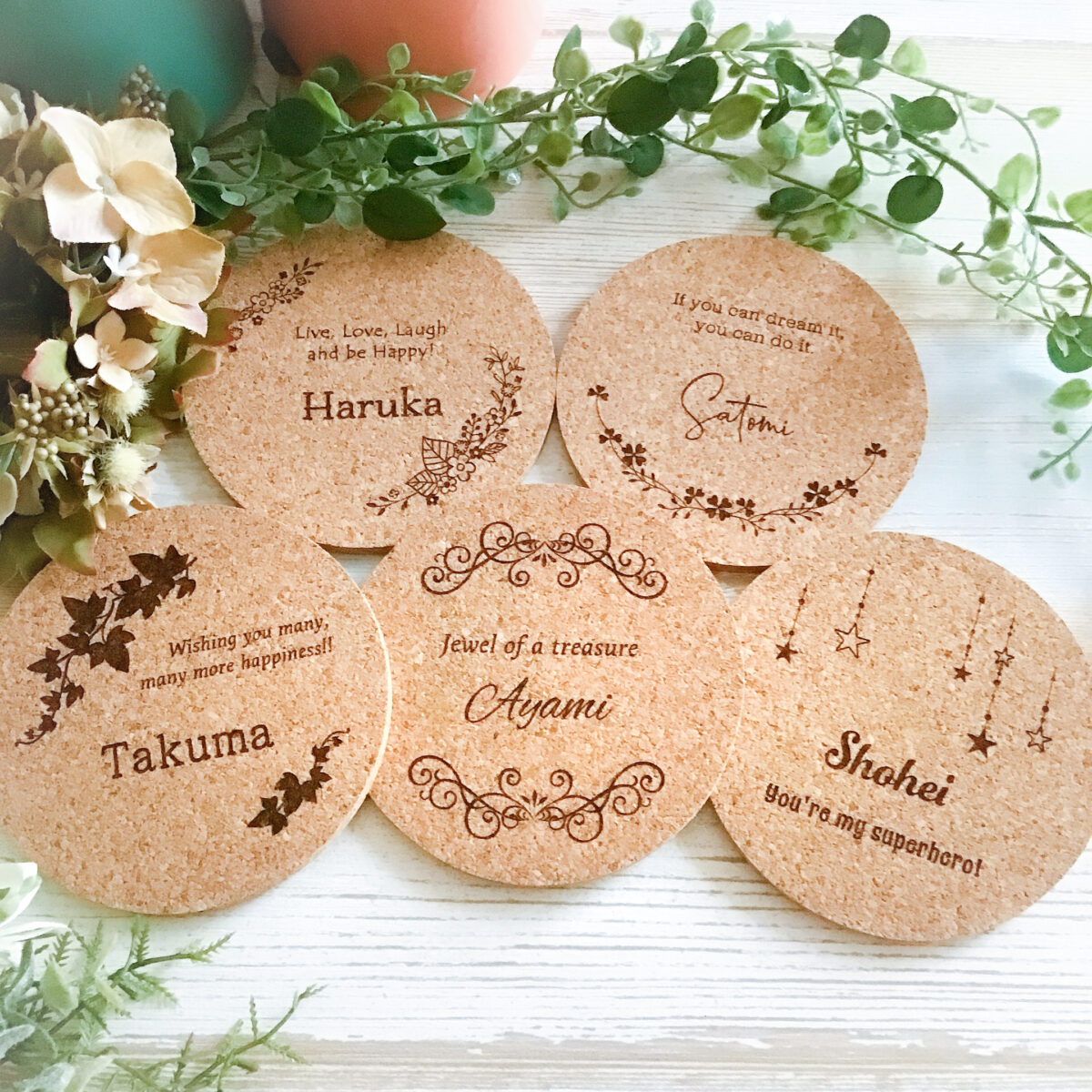 コルクコースター メッセージ+名入れ -プレゼントや記念品・結婚式の席札に- – Atelier House JaM。
