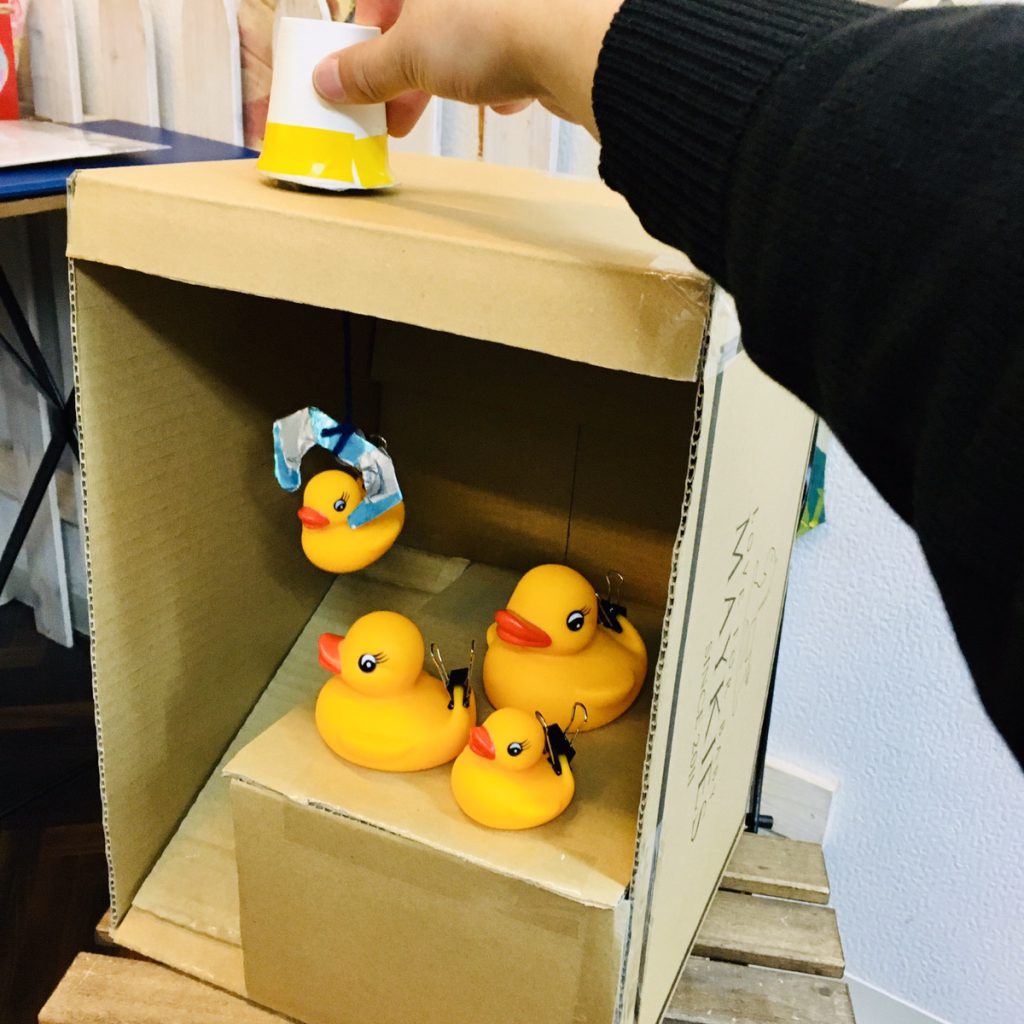 子供たちが作る UFOキャッチャー クレーンゲーム!ダンボール工作大阪の絵画教室・お絵描き教室モネスク。
