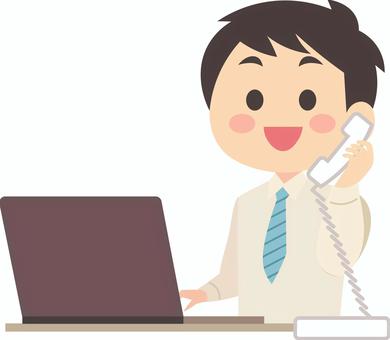 フリーのイラスト素材・ビジネス素材 イラスト受付の男性イラスト 電話2 ランランド。