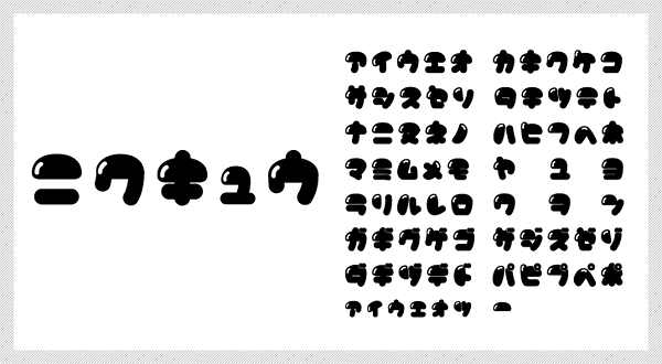 無料素材ツヤのある風船のような可愛い日本語フリーフォント「ニクキュウ」。