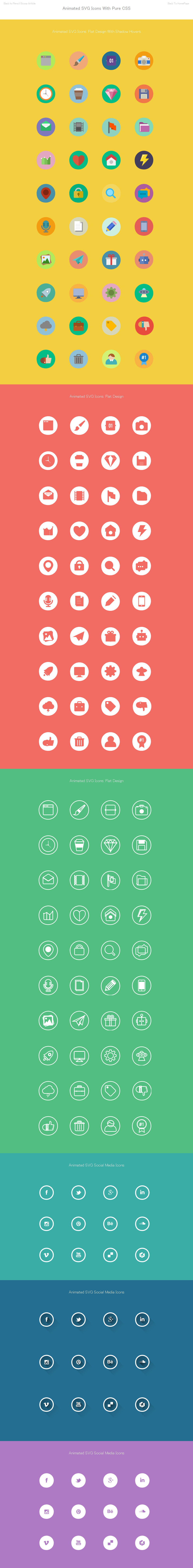 アニメーションも楽しめる 150種のSVGフラットアイコンセット「150+ Free Animated SVG Icons」。
