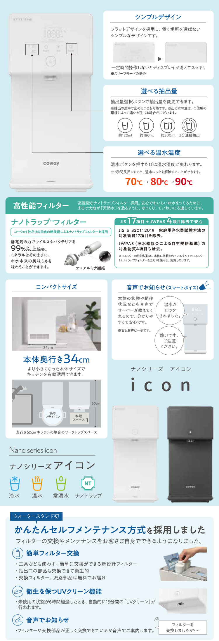 水道直結ウォーターサーバー「ウォータースタンド」から新商品『アイコン icon 』をリリースウォータースタンド株式会社のプレスリリース。