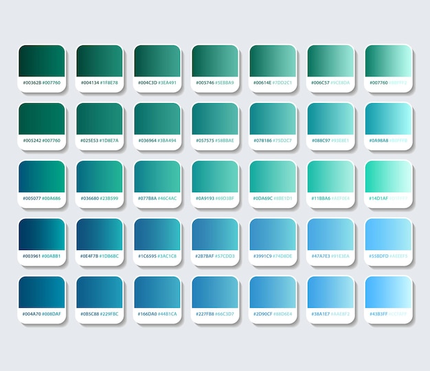 16 進数のアクアマリンとブルーのカラー パレットPremiumベクトル素材。