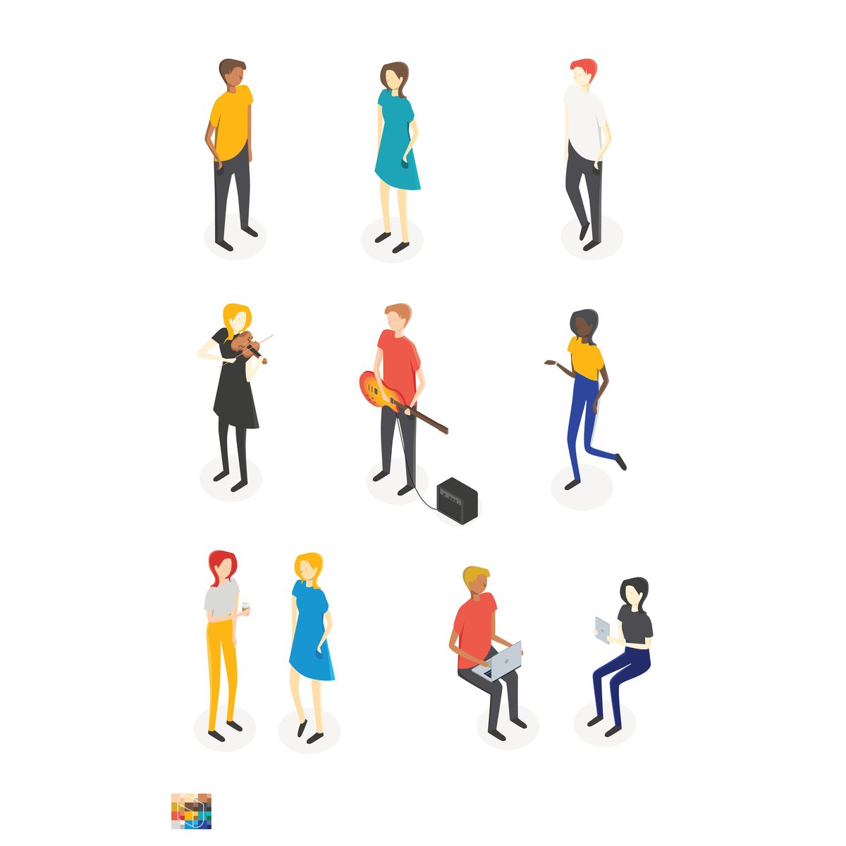 アイソメトリックの人物イラスト - レンタル撮影スペース「STUDIO TOKI」。
