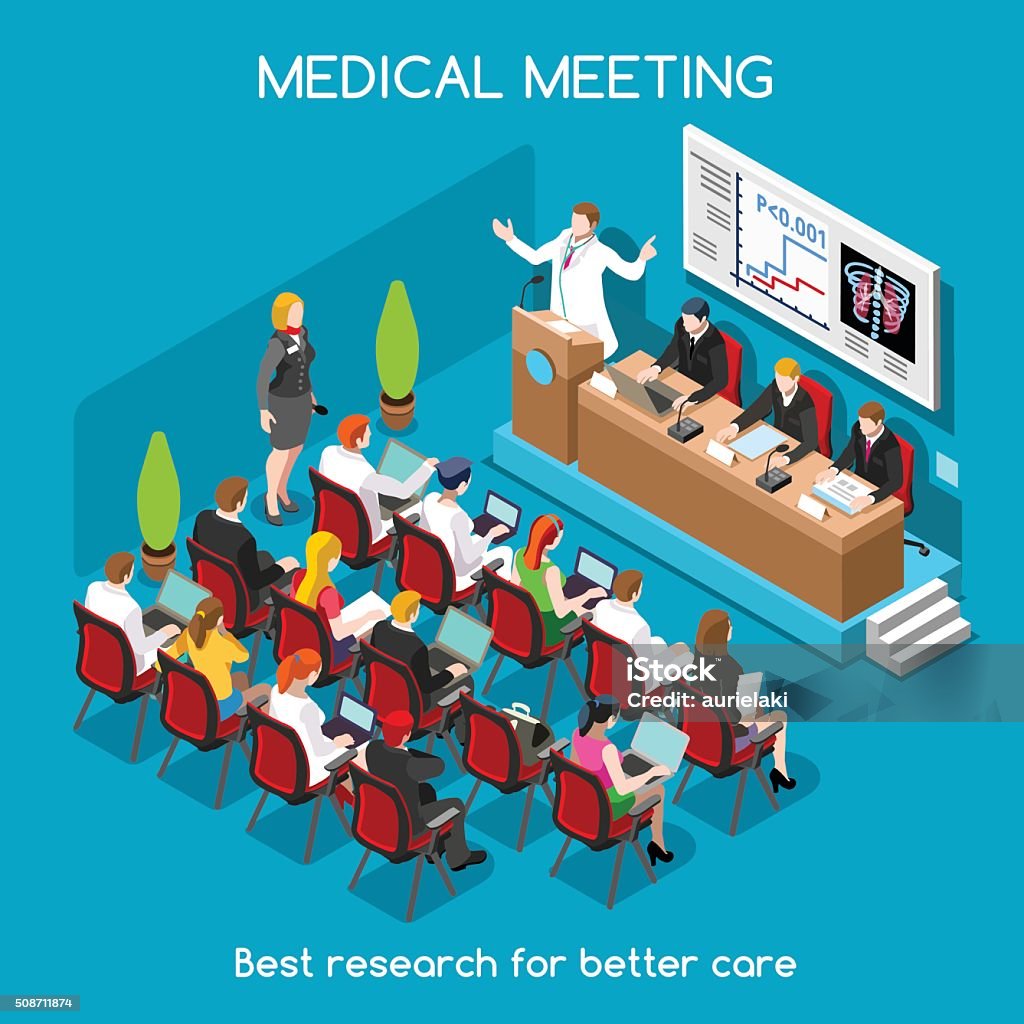 医療ミーティング人アイソメトリック - プレゼンのベクターアート素材や画像を多数ご用意 - プレゼン, 医師, 投影図 - iStock。