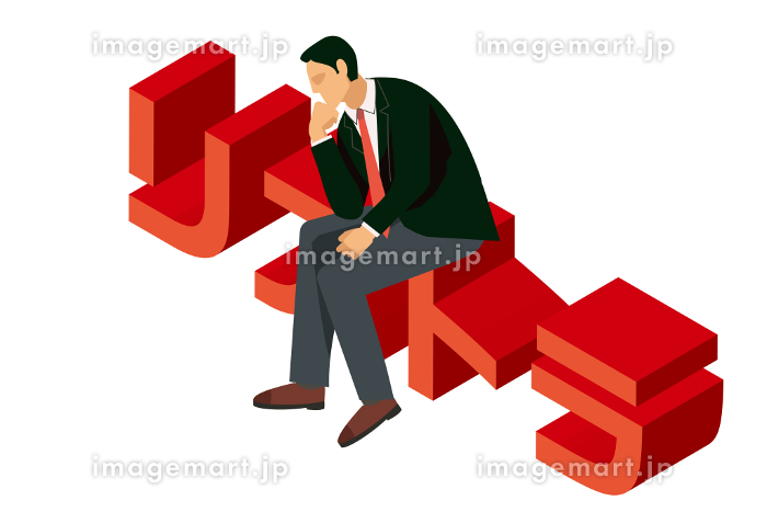 リストラのアイソメトリックスのロゴに座る8等身のビジネスマン。考える人のアバター日本人男性イラスト180234311 毎月1点無料 フリー のストックフォト イメージマート。
