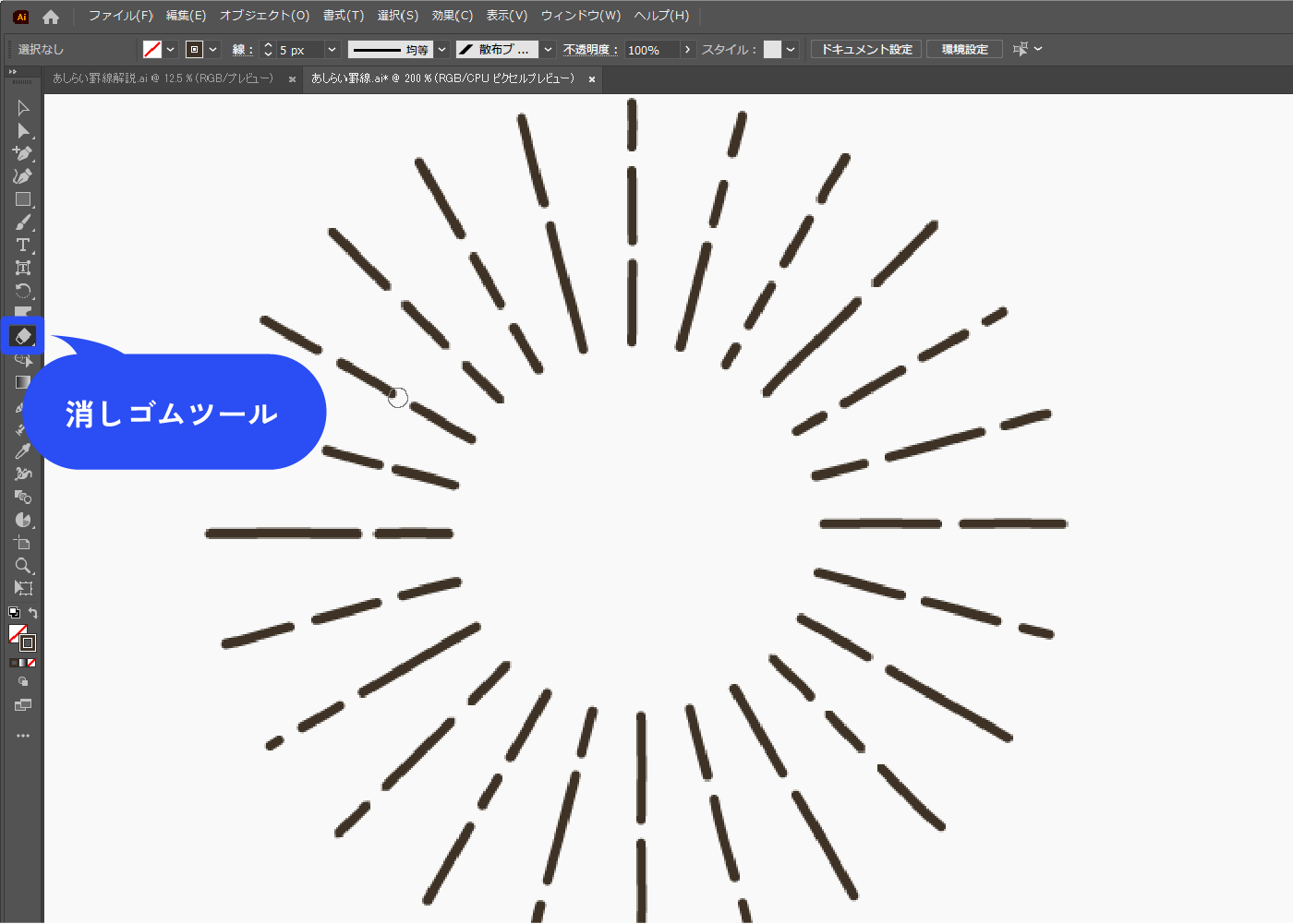 Illustratorで点線集中線ブラシを作る - trismegistuslabo トリメギブログ。