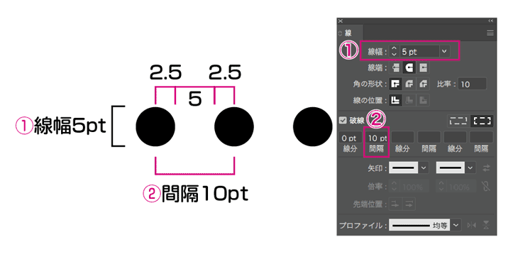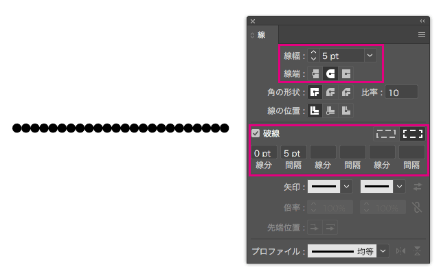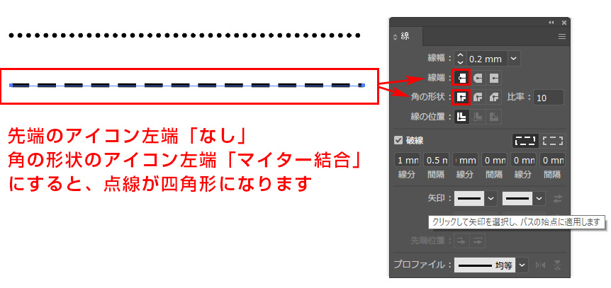 イラレで点線!破線パネルからの点線の作り方!イラレ屋。