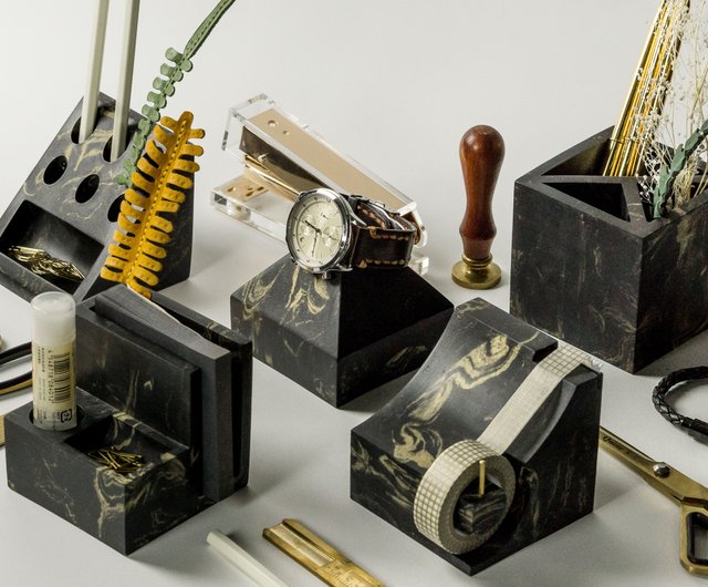 リサイクルされた大理石。積み木文房具収納シリーズ。 3ピースのグループを選択します。黒 - ショップ CHANZ STUDIO その他 - Pinkoi。
