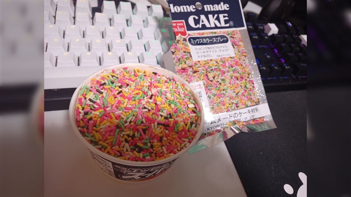これを考えた人は天才でしょう」スーパーカップにミックスカラースプレーをてんこ盛りにした「ガキの夢味」が素敵すぎる - Togetter。