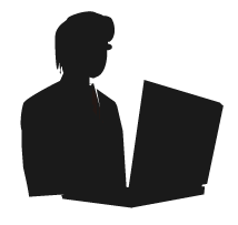 パソコンを使う男子のシルエットのイラスト - いらすと本舗。
