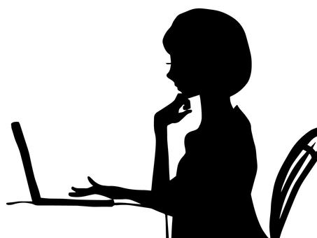 ノートパソコンに向かい仕事をする女性のシルエットのイラスト素材98461005- PIXTA。