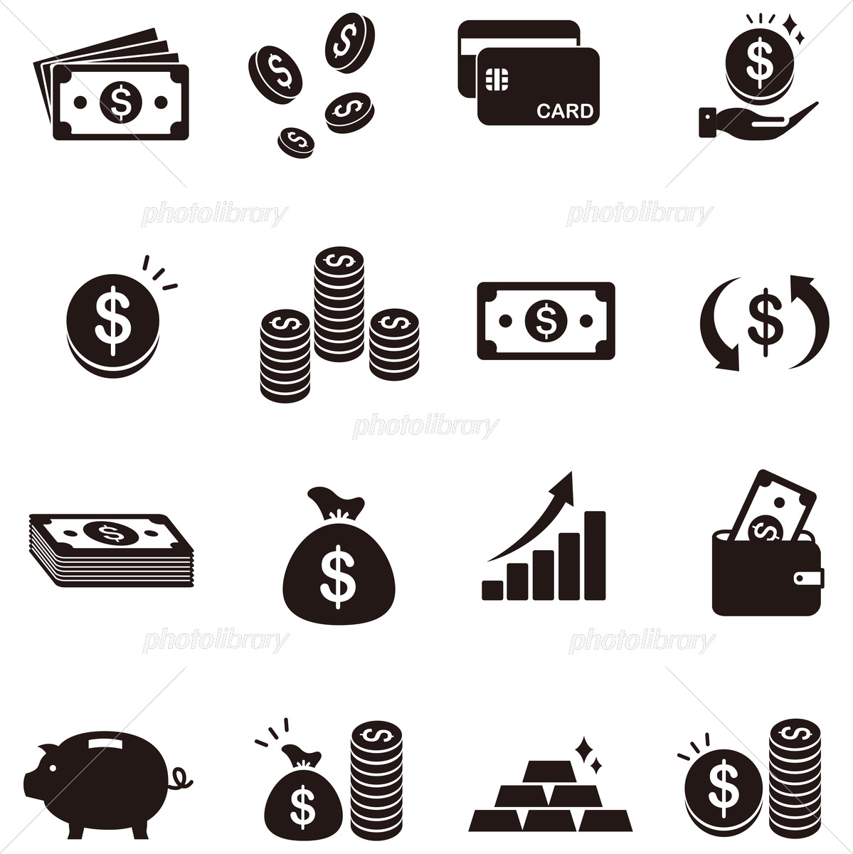 お金・お札 モノクロアイコン素材2 – アイコン・イラストダウンロードサイト OWL STOCK -オウルストック。