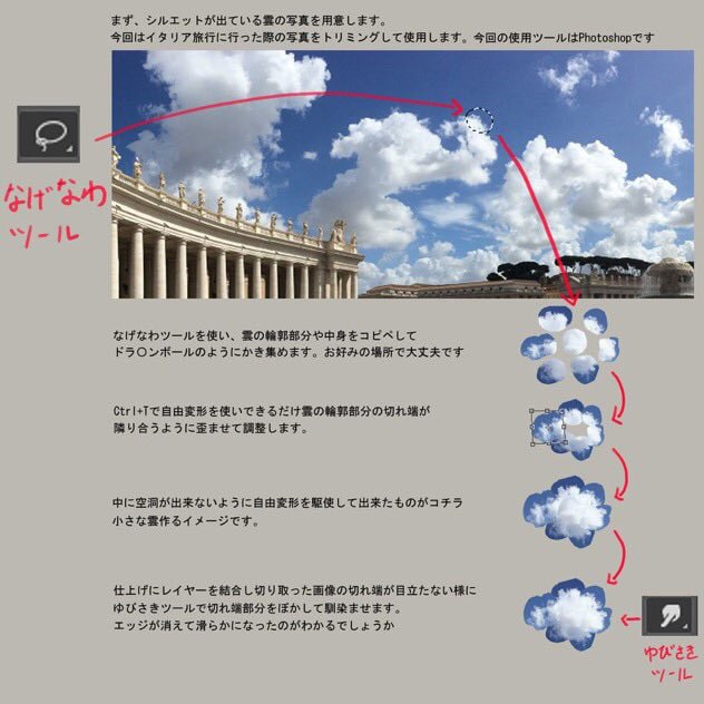 テクスチャ ゼロからつくる!青空と逆光の雲「何もない状態から描くデジタル背景」 psgips。