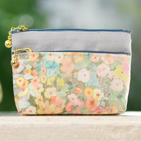 真ん中ファスナーのフラットポーチ - オガワ雑貨店。