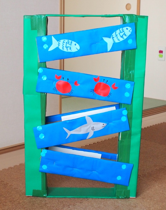 ダンボールで簡単工作 玉落としゲームでレクリエーションshigeyuki.net。