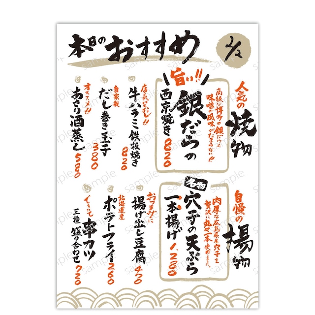 ☆大好評☆筆文字 オーダーメイド 居酒屋風手書きメニュー表。