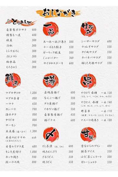 4ページ - 居酒屋メニュー無料テンプレートデザイン。イラストや画像付きも豊富 - Canva キャンバ。