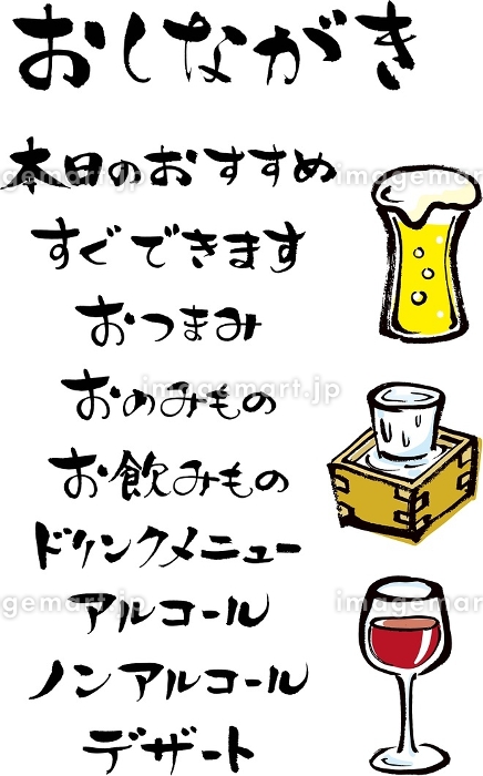 ドリンクメニューの和風筆文字、手書き風素材 居酒屋風のイラスト素材110768690- PIXTA。