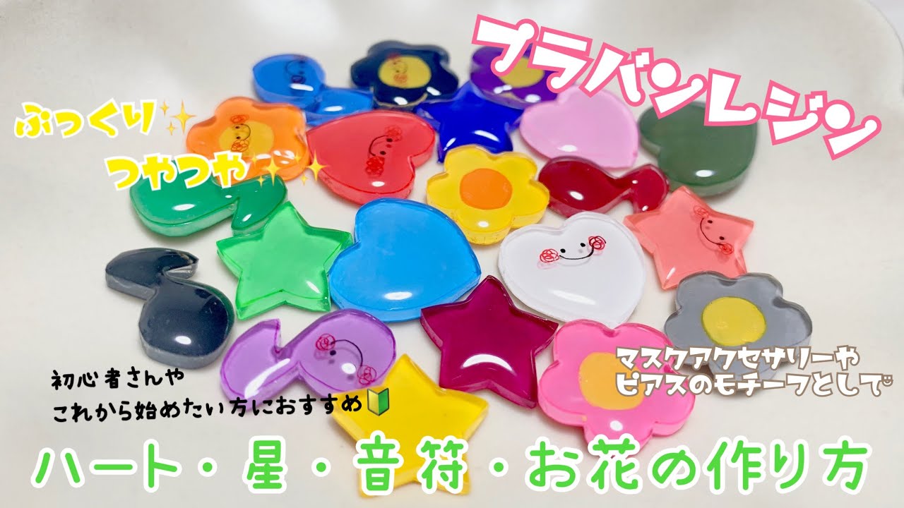 初心者さんにおすすめ🔰ぷっくりつやつやなハート、星、音符、お花モチーフの作り方 プラバンレジン。