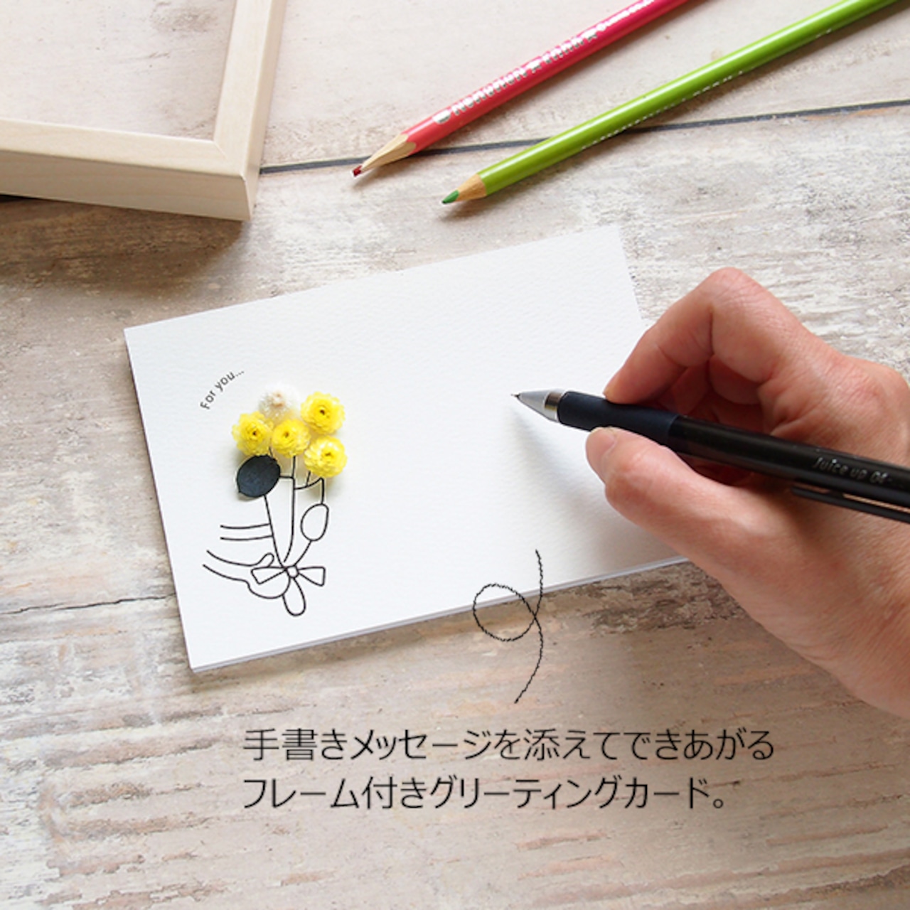 30011 メッセージカード ポスト投函 ギフト お花 花束贈呈 イラスト 手書き 手作り 立体 おしゃれ フォトフレーム付き グリーティングカード送料無料en-tres エントレス気持ちが伝わる、ちょっと贅沢なメッセージカード。
