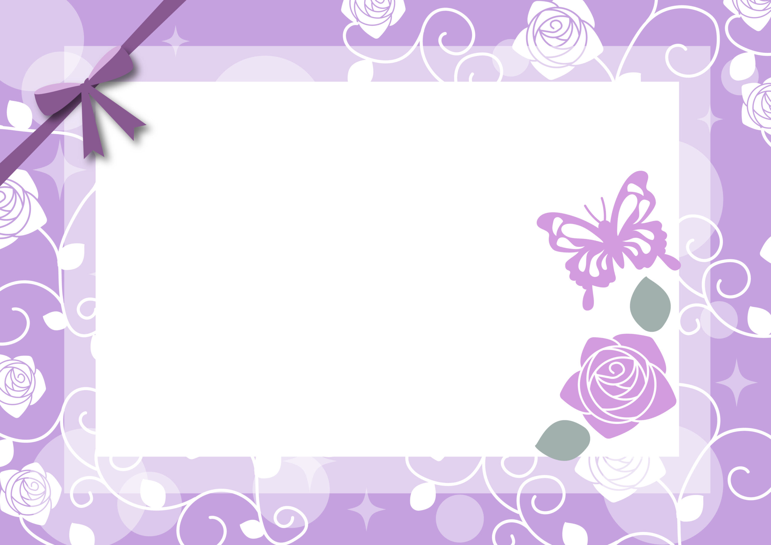 おしゃれなメッセージカードが手作りできるかわいいフレーム素材!印刷して手書き作成も可能なリボン付きのイラストになり、綺麗。