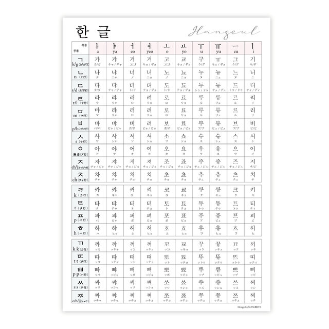 ハングル語 反切表 韓国語 あいうえお表 ポスター A3サイズ 韓流 インテリア 角丸iichi日々の暮らしを心地よくするハンドメイドやアンティークのマーケットプレイス。