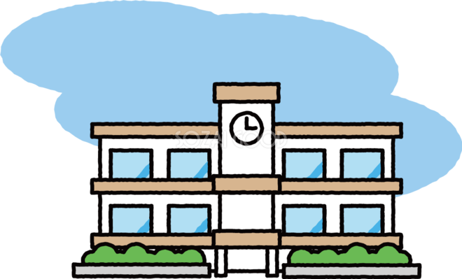 学校の外観イラスト素材 JPG形式・高解像度- フリーかわいい- かわいい素材、ぜんぶ無料。