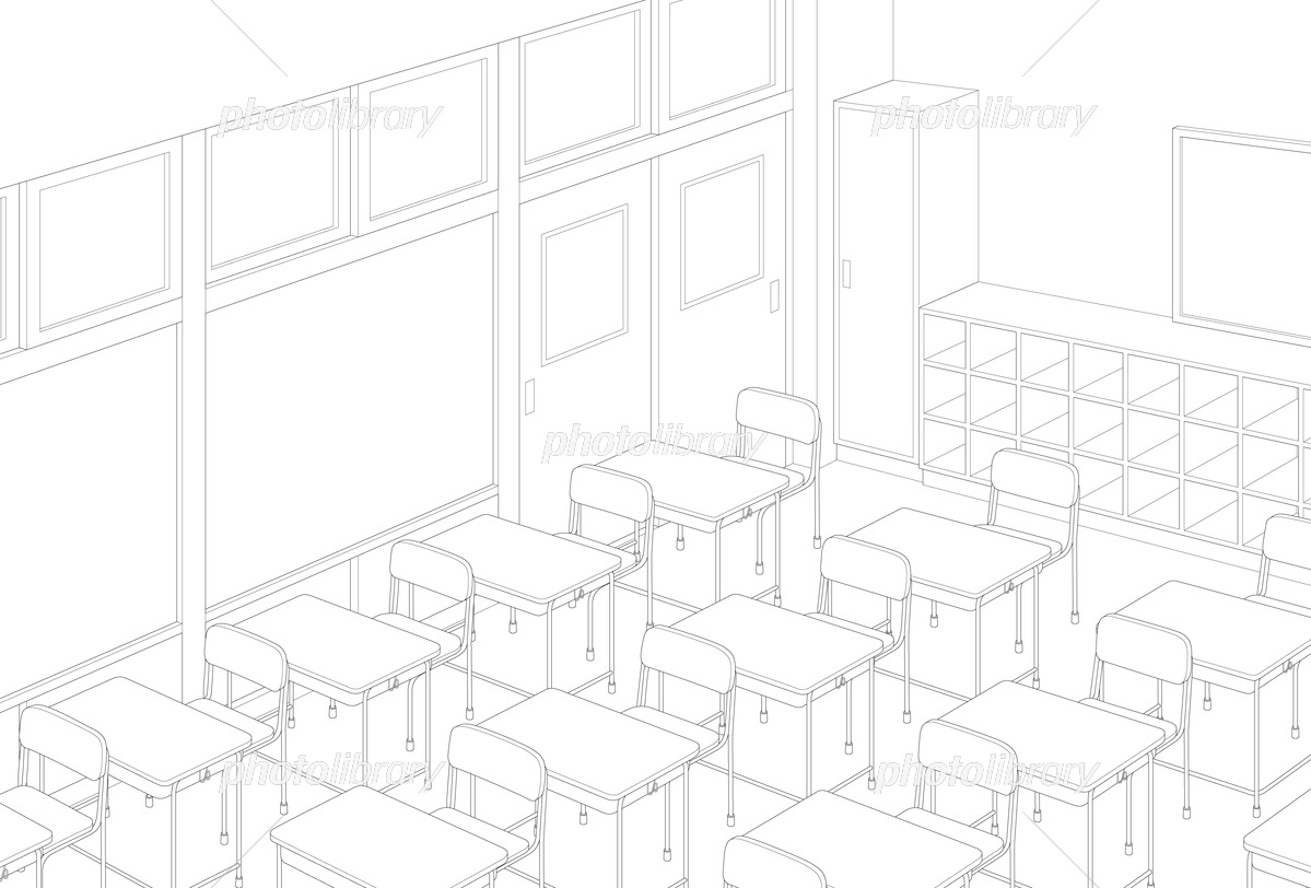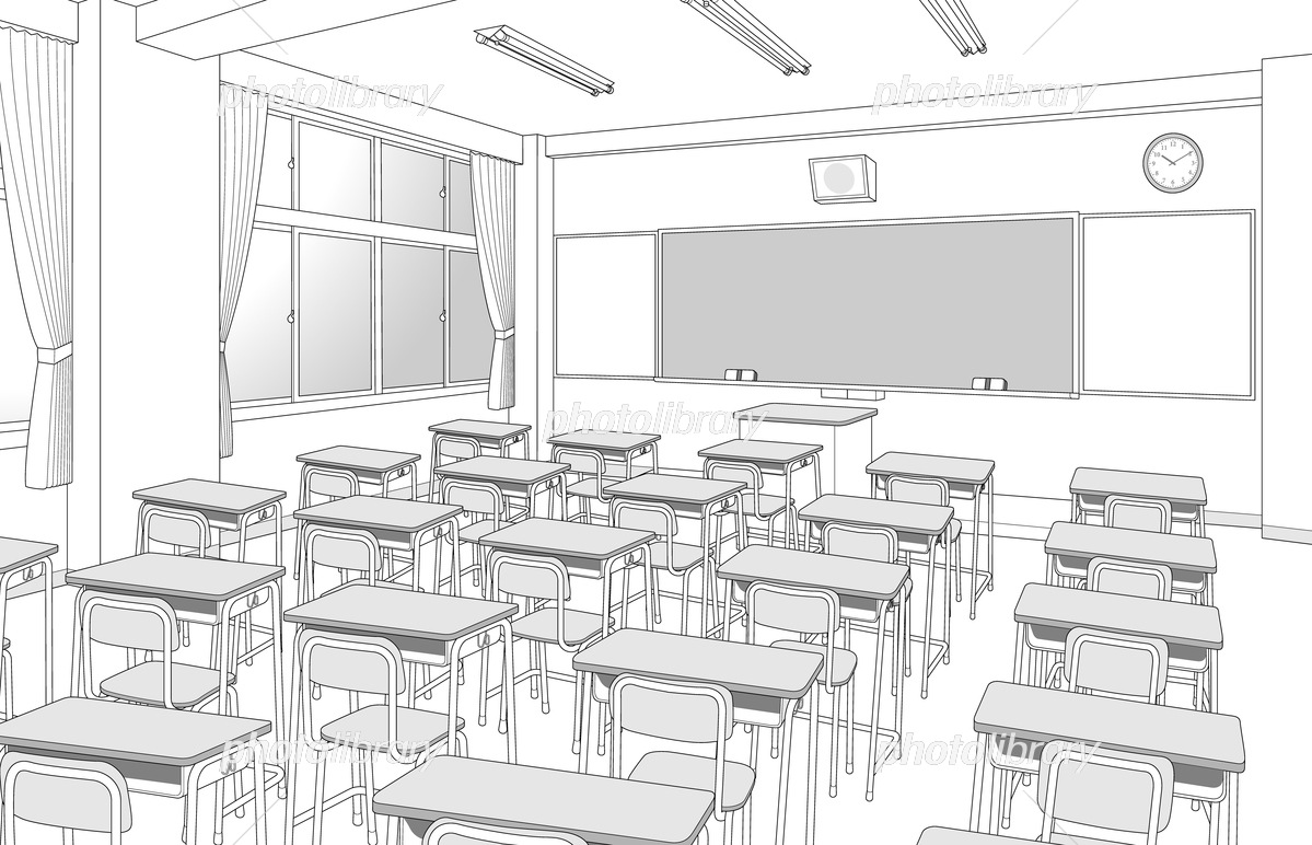 手描き背景線画_学校_教室16のイラスト素材FYI00604992ストックフォトの Qlean Market キュリンマーケット。