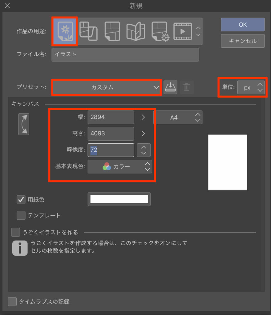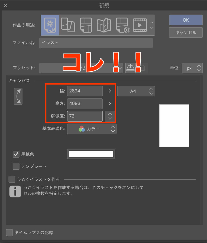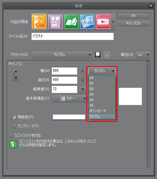 クリスタ キャンバスサイズ、dpiのおすすめ設定xxfiction。